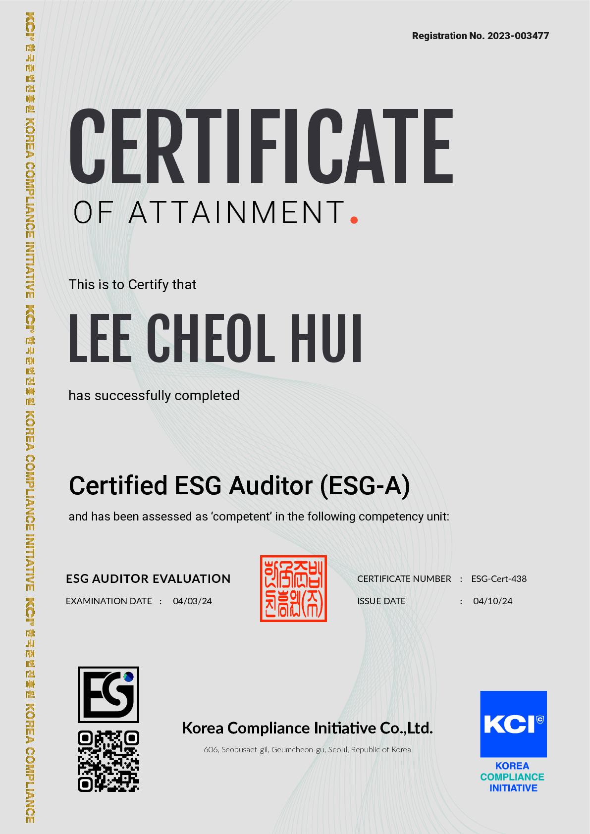 2024.04.10. (주)에버켐텍 임직원 Certified ESG Auditor(ESG-A) ESG 심사원 자격 취득