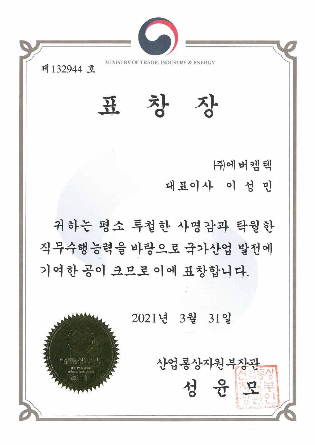 2021.03.31 2021년 제48회 상공의날 유공포상_산업통상자원부장관 표창장