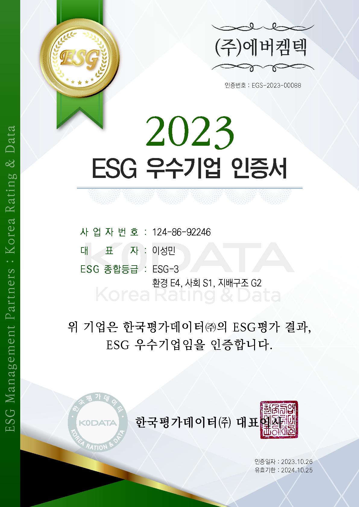 2023.10.26. 2023 ESG 우수기업 인증 취득 페이지 정보 작성자 EVERCHEMTECH 댓글 0건 조회 500회 작성일 23-11-15 14:33 목록 본문 2023.10.26. 2023 ESG 우수기업 인증서 이전글2023.12.12. MBN 저녁 7시 뉴스_에버켐텍 방송 23.12.13 다음글2023.10.18. 중소기업 기술혁신 유공포상_국무총리 표창 23.10.19 댓글 0 댓글목록 등록된 댓글이 없습니다.