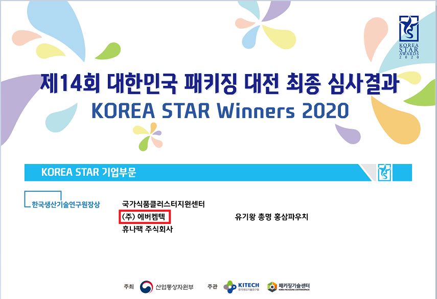 (주)에버켐텍이 KITECH(한국생산기술연구원)에서 주관하는 제14회 대한민국 패키징 대전에서 한국생산기술연구원장상을 수상하였습니다.
