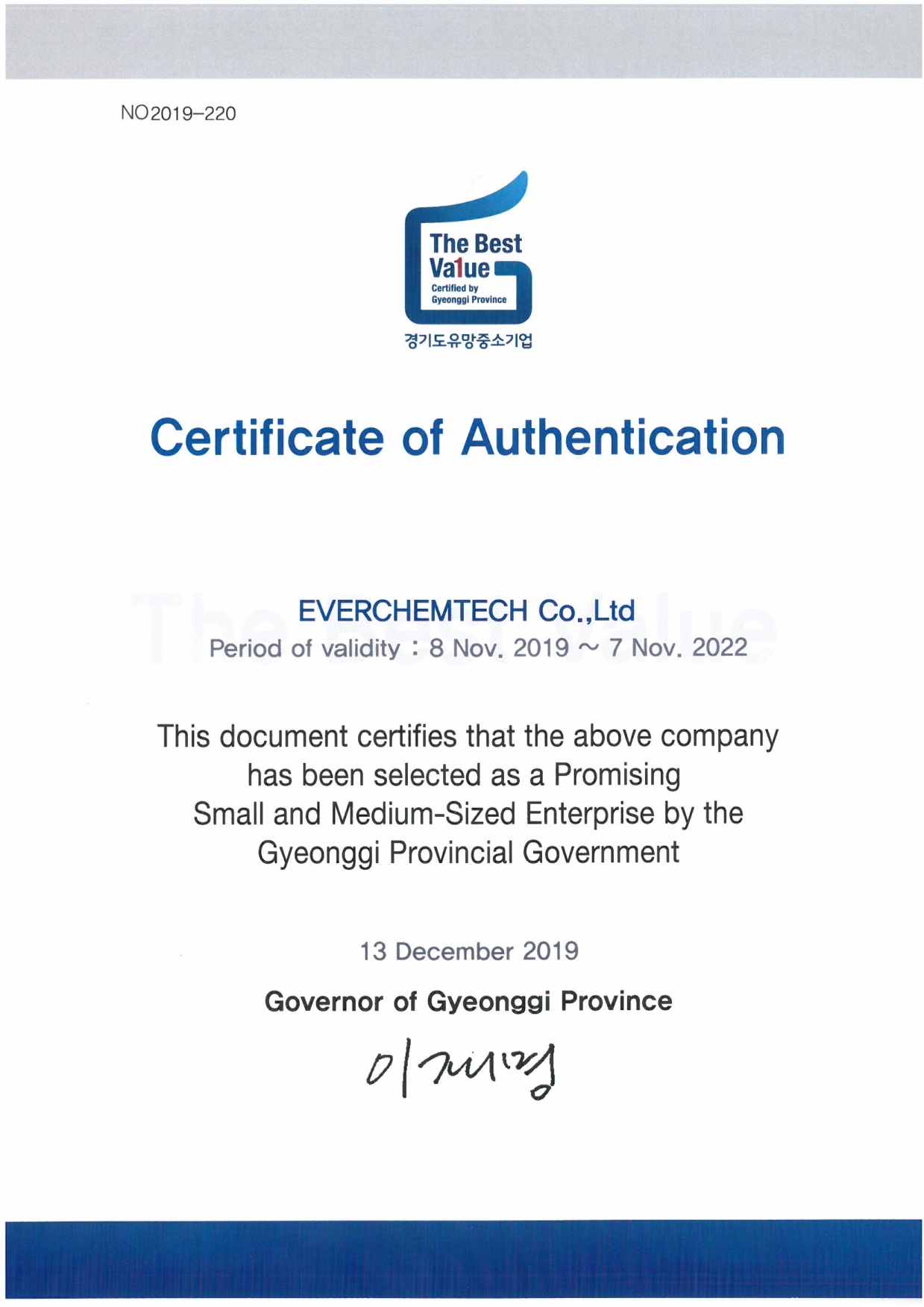 2019 경기도 유망중소기업 최종 선정 페이지 정보 작성자 관리자 댓글 0건 조회 1,092회 작성일 19-12-27 10:23 목록 본문 (주)에버켐텍이 2019 경기도 유망중소기업에 최종 선정 되었습니다. 이전글2019 우수 기업연구소 지정 19.12.27 다음글2019.12.19 2019 소재ㆍ부품ㆍ장비 강소기업100 최종선정 19.12.19 댓글 0 댓글목록 등록된 댓글이 없습니다.